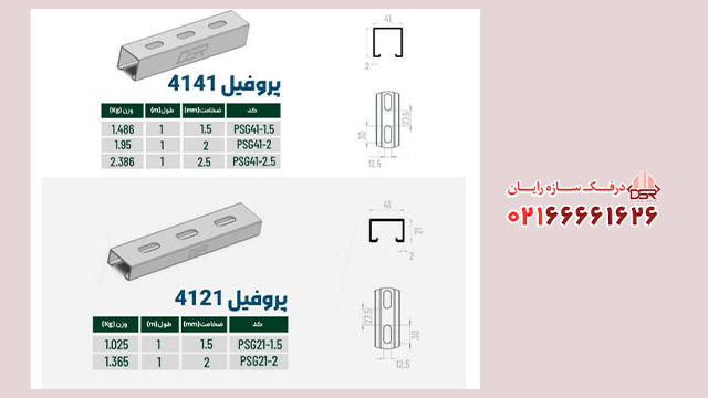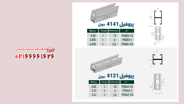 مشخصات مقطع عرضی (مثال برای پروفیل 41 میلیمتری):